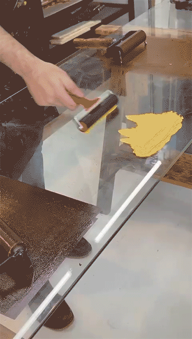 in woodcut, using natural inks born from